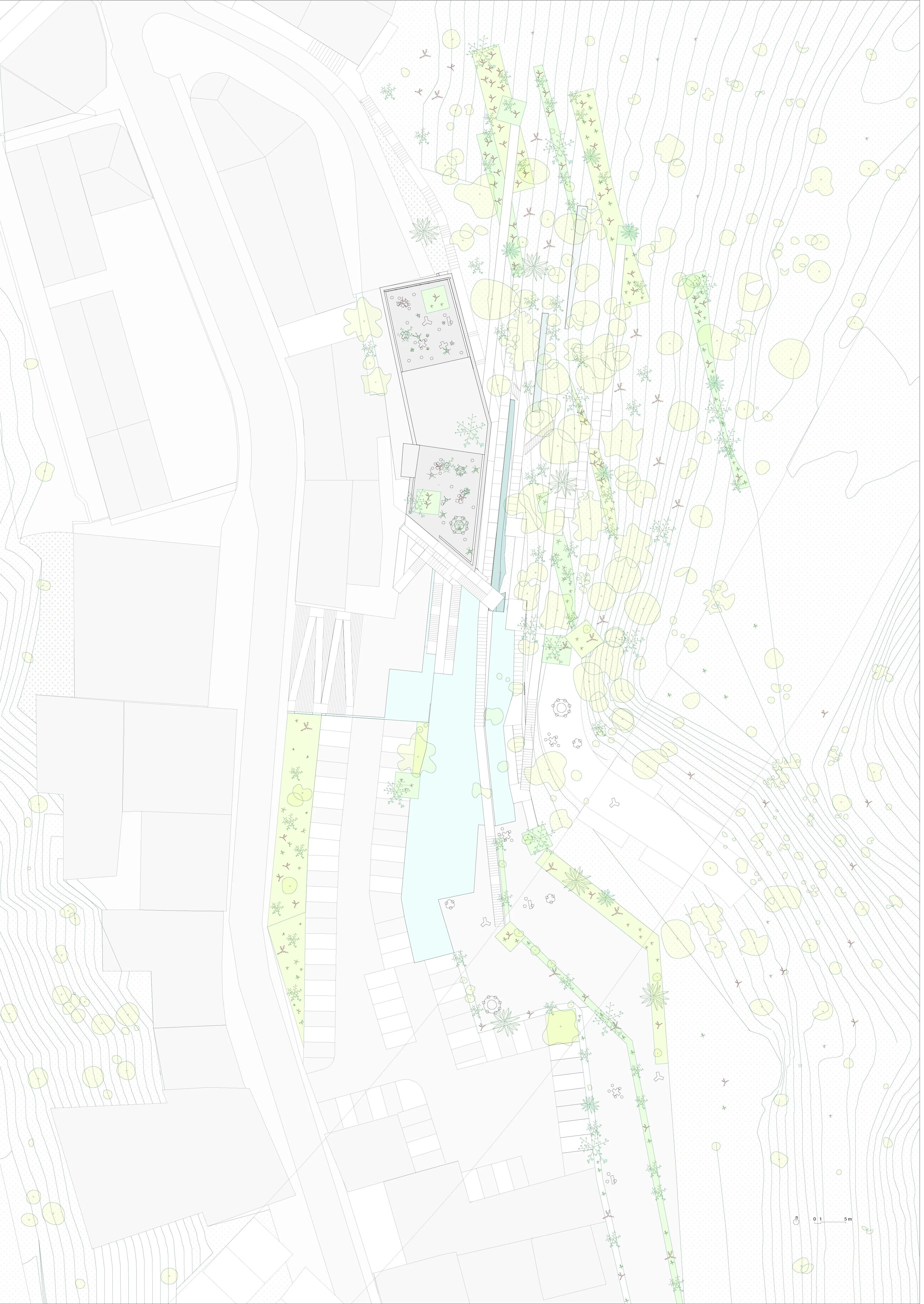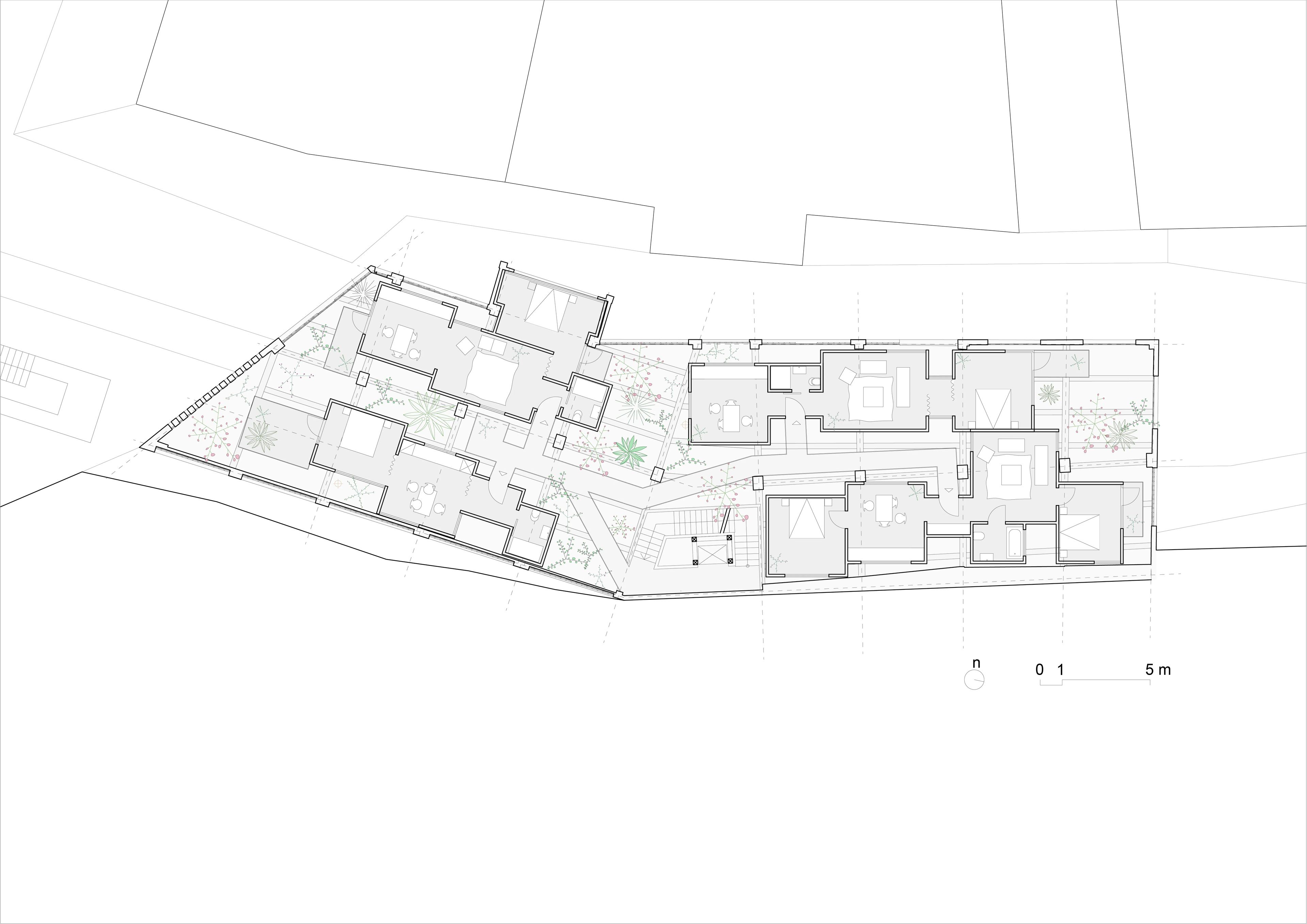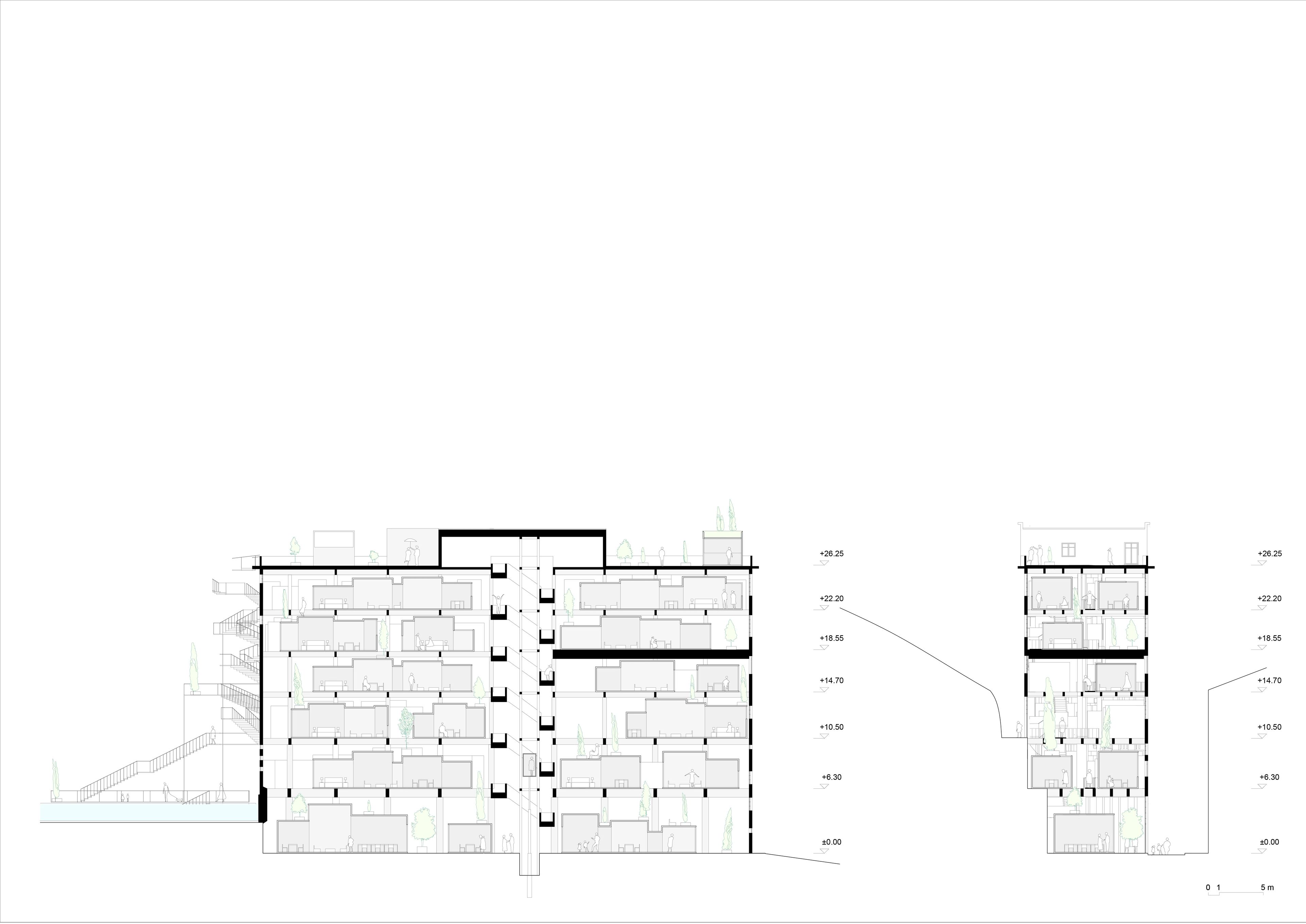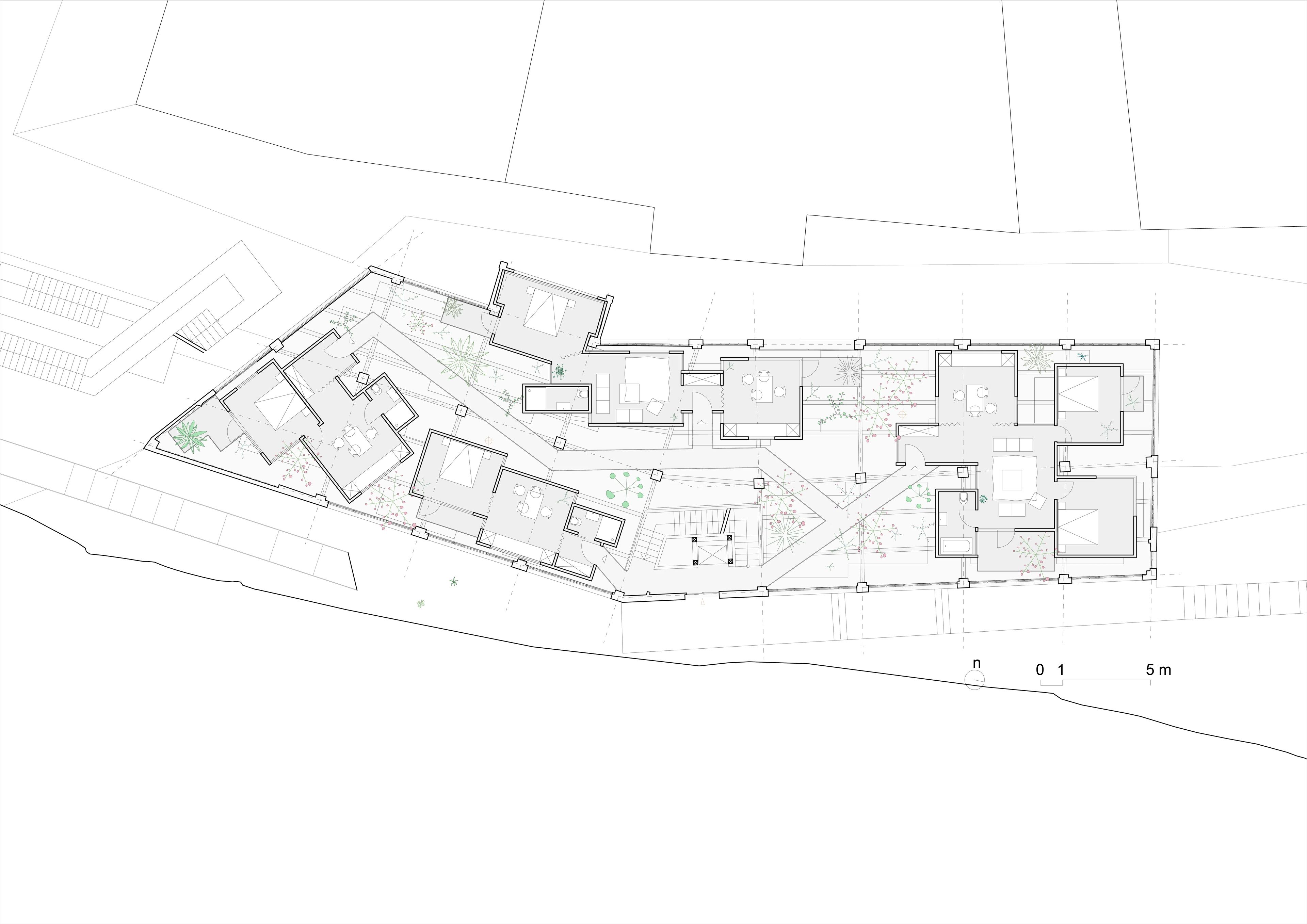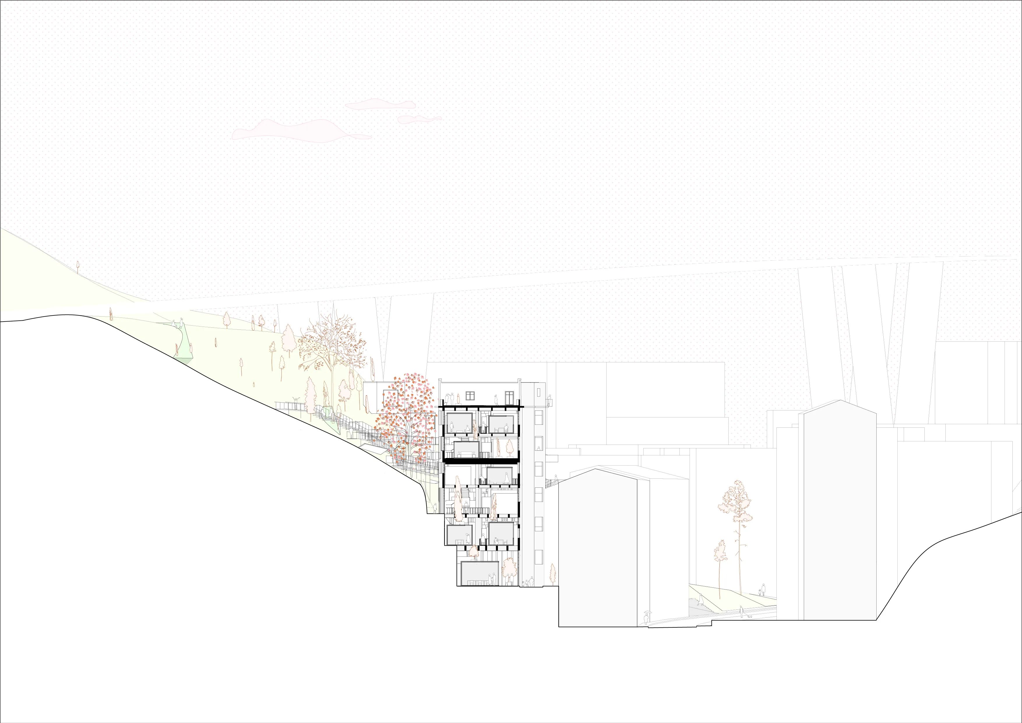 The primary concept revolves around creating high-quality spaces that not only preserve the industrial essence of the site but also enhance it. The challenge lies in transforming the industrial building into fully functional apartments while retaining its inherent character. The key focus is on dividing the space into smaller dwellings without compromising the open-space, high-ceiling, and exposed structure features. To achieve this, the existing building is approached as a framework or protective shell, akin to a tree supporting and safeguarding its delicate fruits with branches. In this manner, the building fosters a welcoming ecosystem for the new dwellings.