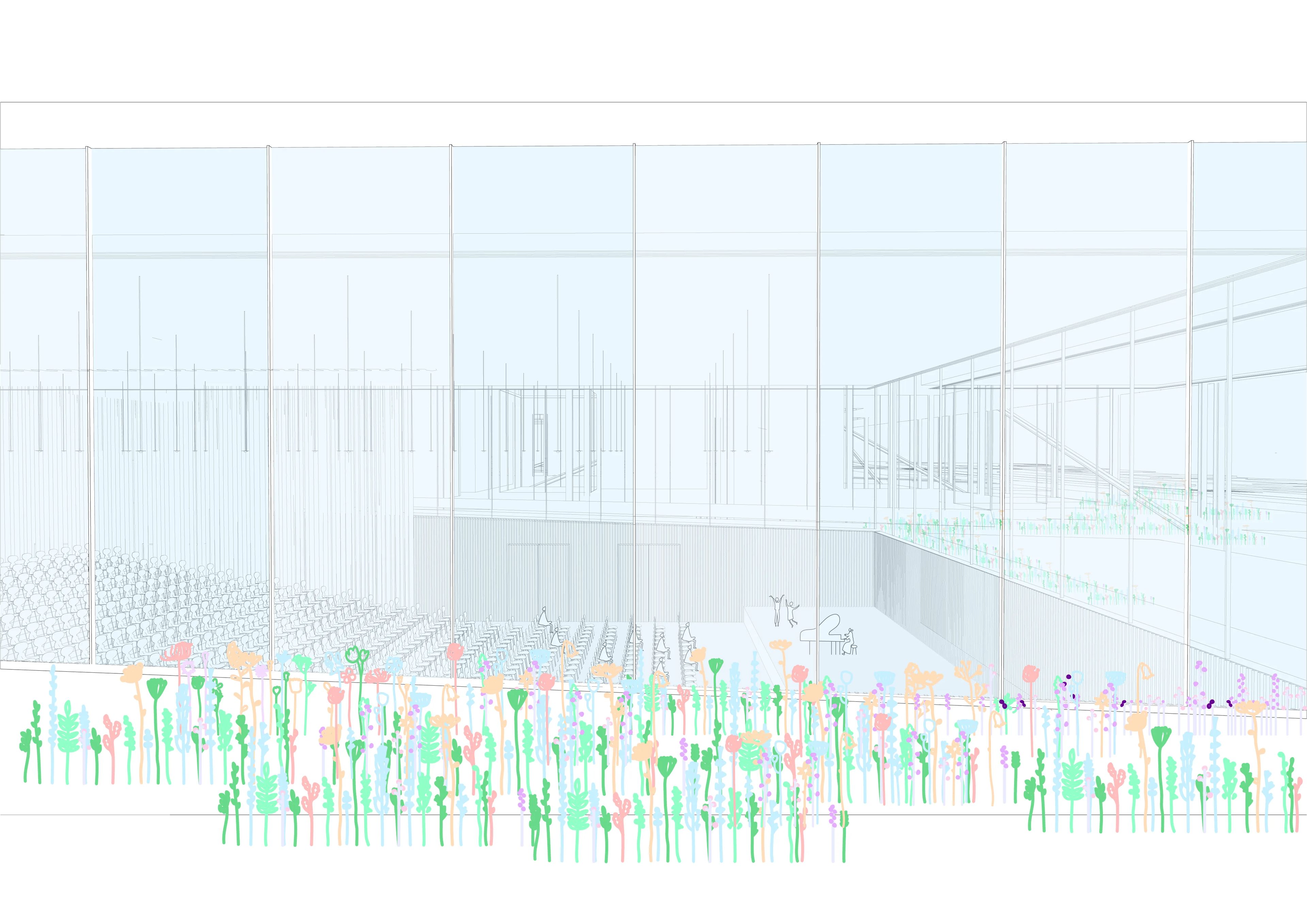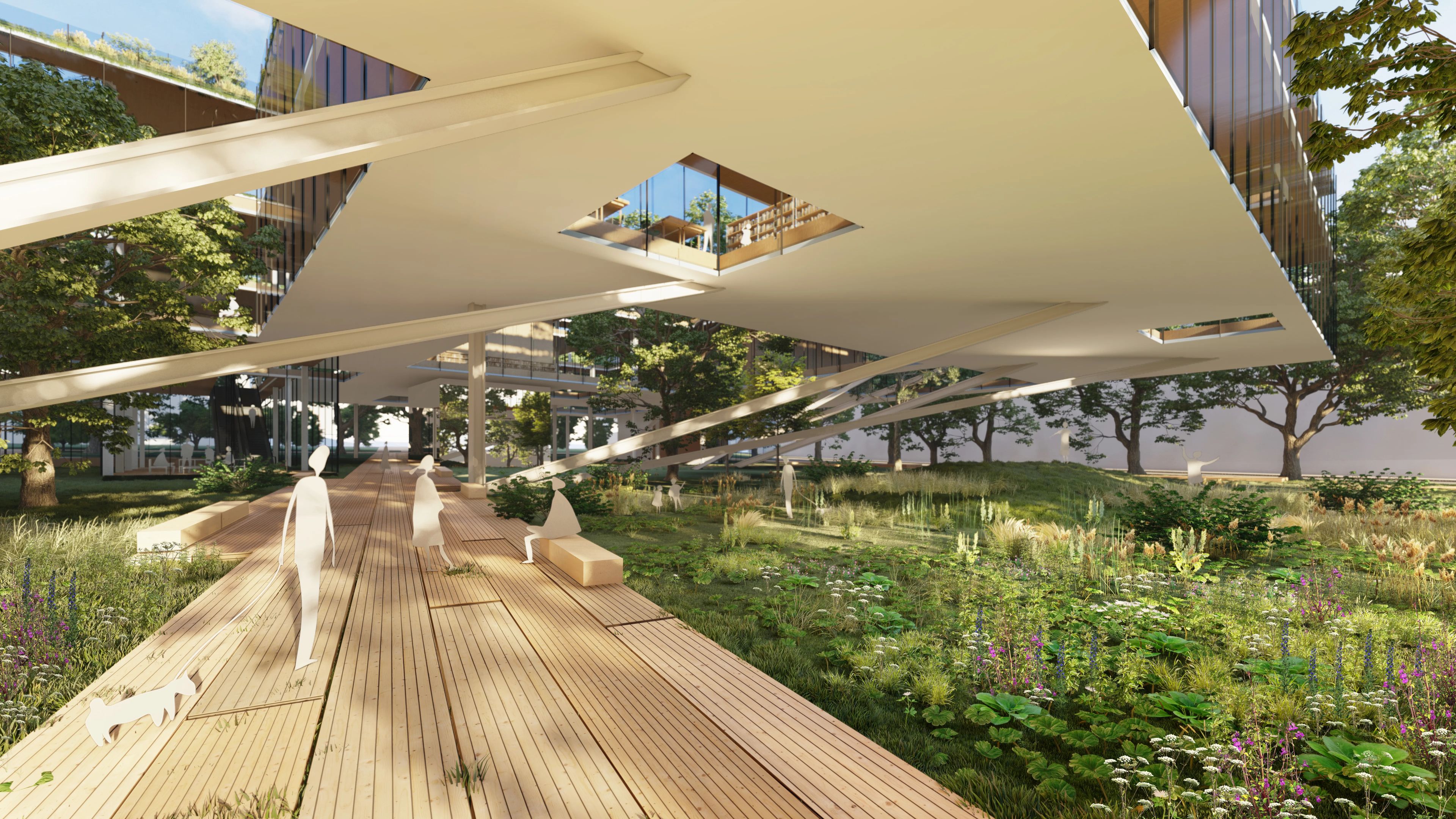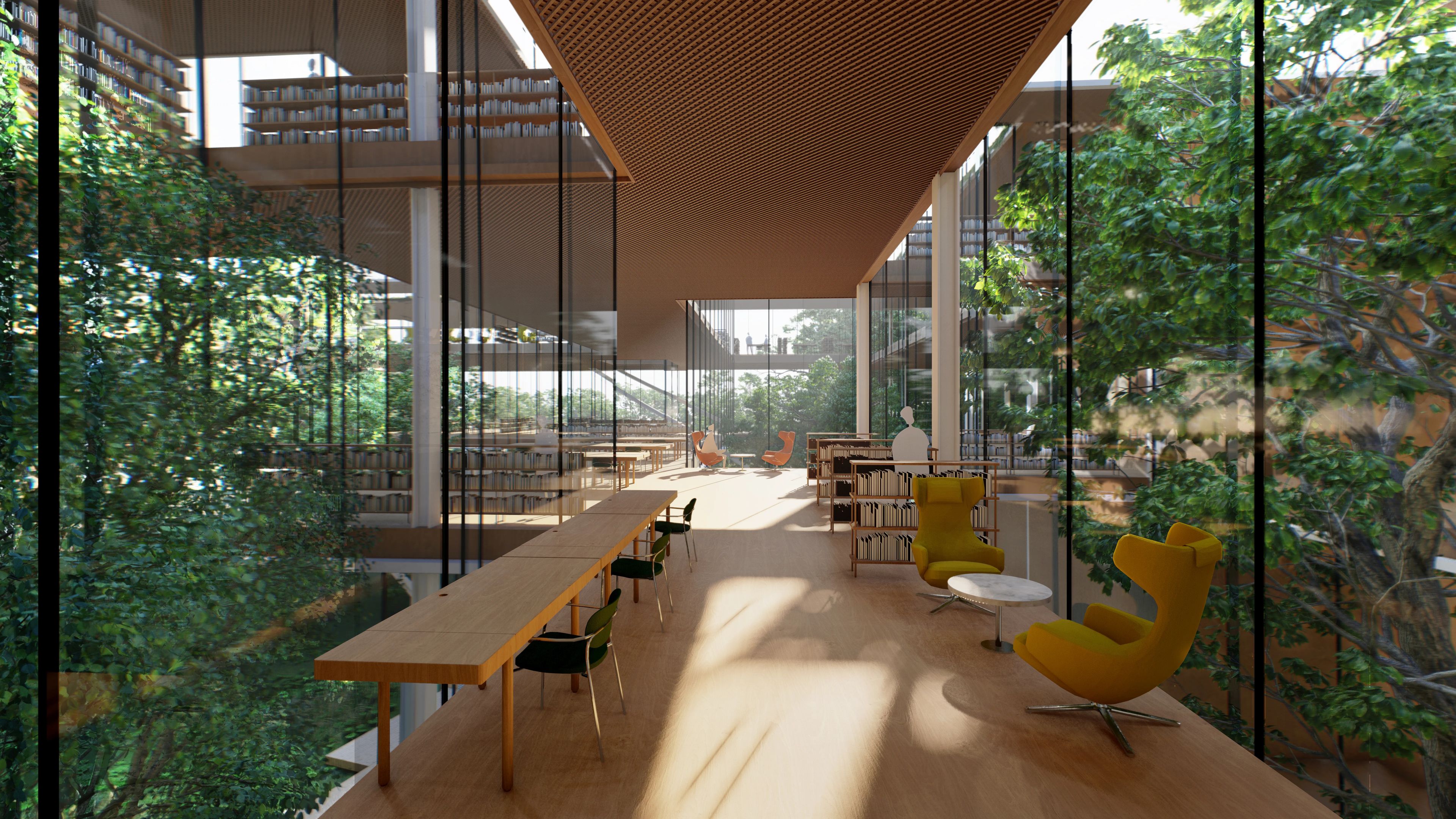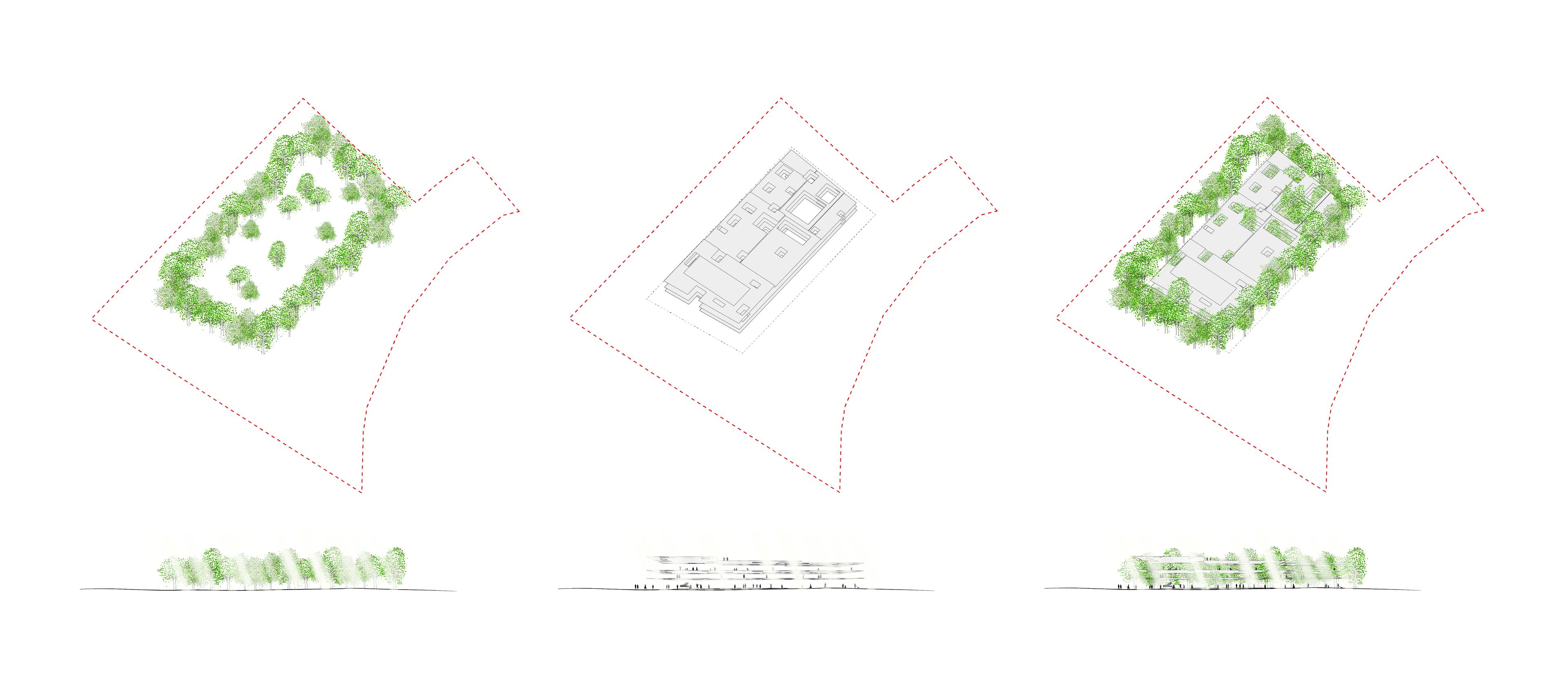 The Estonian word hiis refers to a sacred grove—places of deep cultural and spiritual significance where people once gathered for rituals, offerings, and seasonal celebrations. More than sites of worship, these groves were also centers of community life, where stories, food, and music were shared. The new cultural center in Tartu reinterprets the spirit of the hiis. Surrounded by dense rows of native trees, the building sits within a natural buffer that offers both privacy and seclusion. Architecture, light, and shadow echo the atmosphere of the groves, creating spaces that invite participation rather than passive contemplation. Like wandering through a forest, visitors move through the center in a fluid sequence of spaces—places to study, perform, play, listen, and work. The design moves away from conventional exhibition halls and classrooms, blending instead with its natural surroundings to foster community and connection. The site itself shaped the project. Old, densely planted trees outline the edges of the block, recalling where buildings once stood. Instead of erasing this natural facade, the design preserves it—placing the new structure at the heart of the site. The trees form an architectural street edge, their generous canopies filtering sunlight and shaping outdoor rooms. Inside and outside merge seamlessly, making the cultural center both a building and a grove: a contemporary hiis for all.